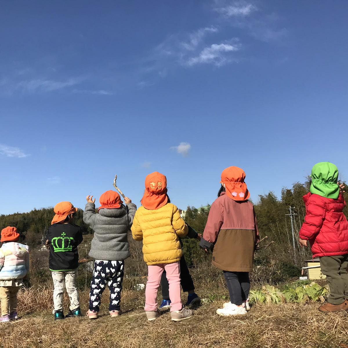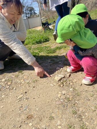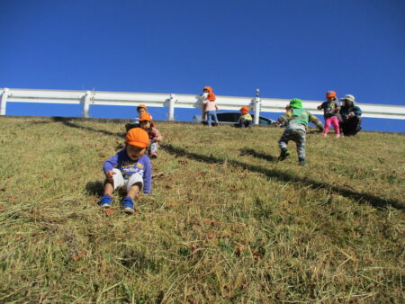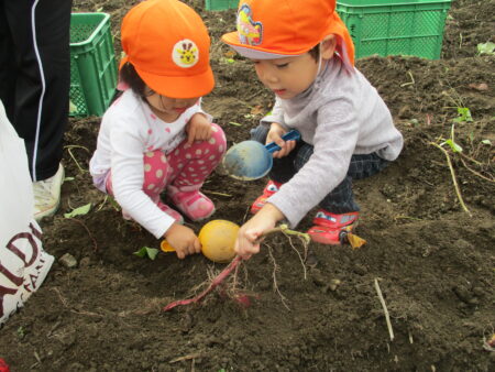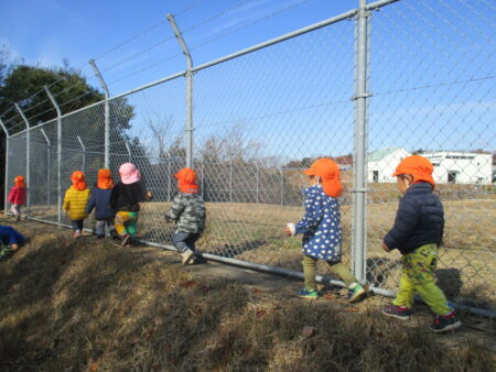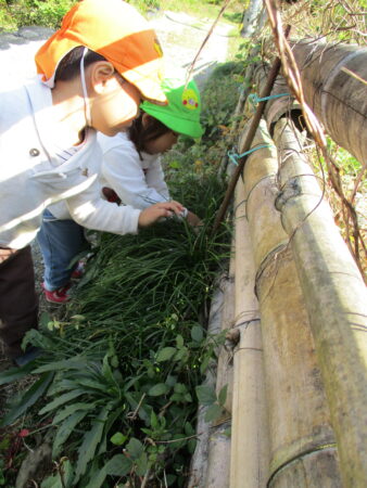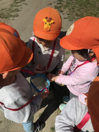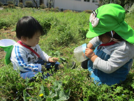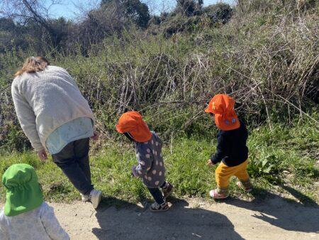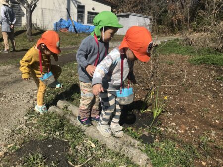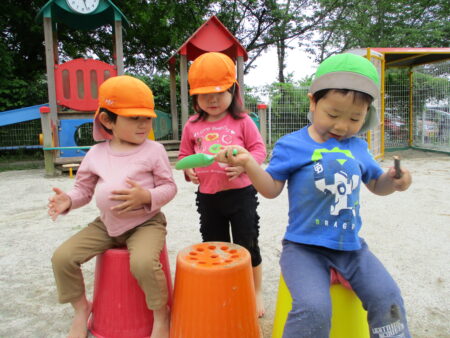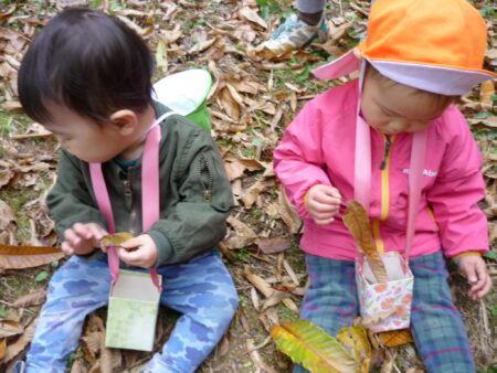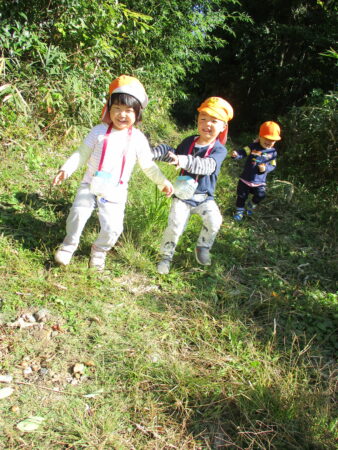 「子どもの立場に立つ」ことを大切にし、子どもたちが、大好きな遊びを思う存分、満足するまで楽しめるようにするために、大人との信頼関係づくりを大事にしながら、一人ひとりの好きな遊び、興味のあること、共通体験から出発し、あそびを考えています。特に、豊かな自然環境を活かし、1年を通して保育園の周辺でのいいもの探しの散歩を楽しんでいます。