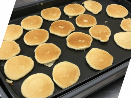 - 食物アレルギー対策として、保育園で提供する給食やおやつは、卵・乳製品・小麦粉など、その時々のアレルギー児の症状に合わせて、食べられない食品を除いたものにし、全員が同じものを食べられるようにしています。