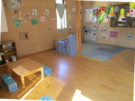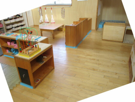 寒い日でも子どもたちが裸足で過ごしたり、赤ちゃんが腹ばいやハイハイをして遊べるよう、各部屋床暖房にしてあります。