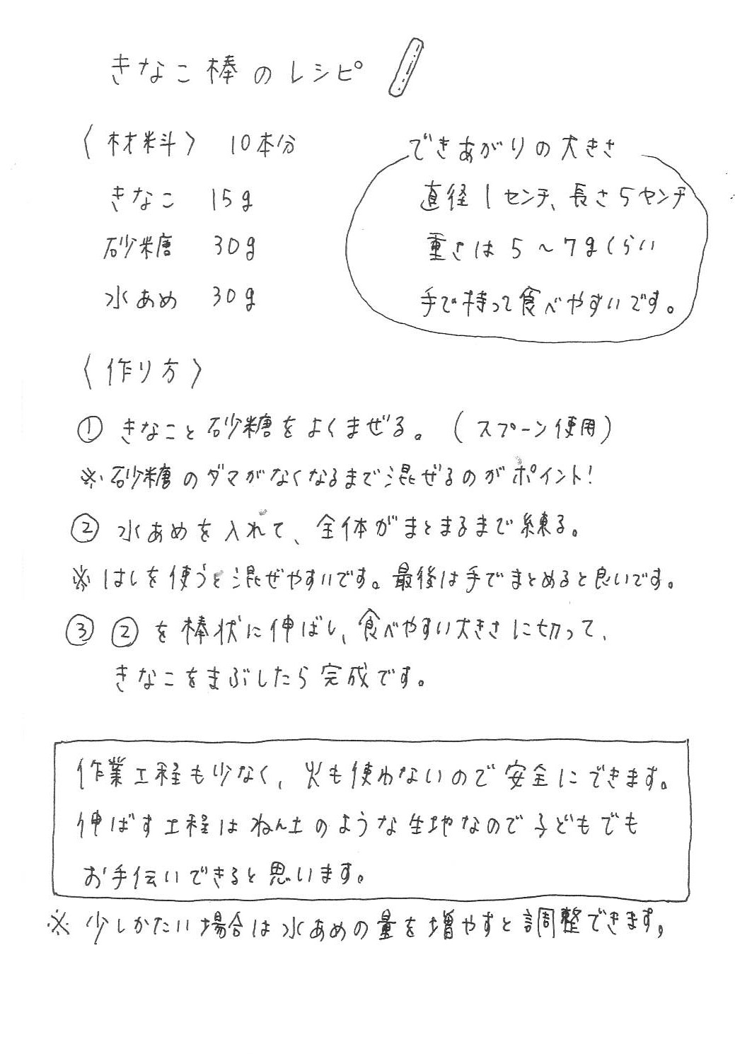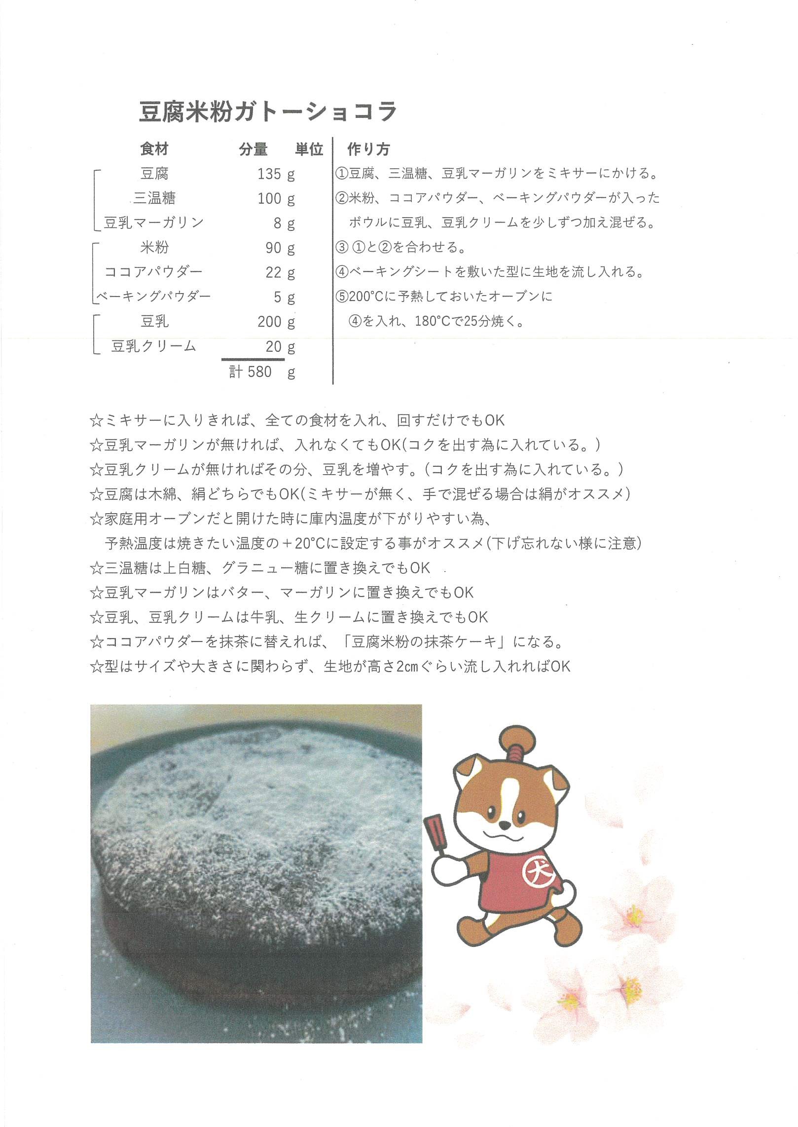 きな粉棒とガトーショコラのレシピを頂いたので掲載させていただきます。